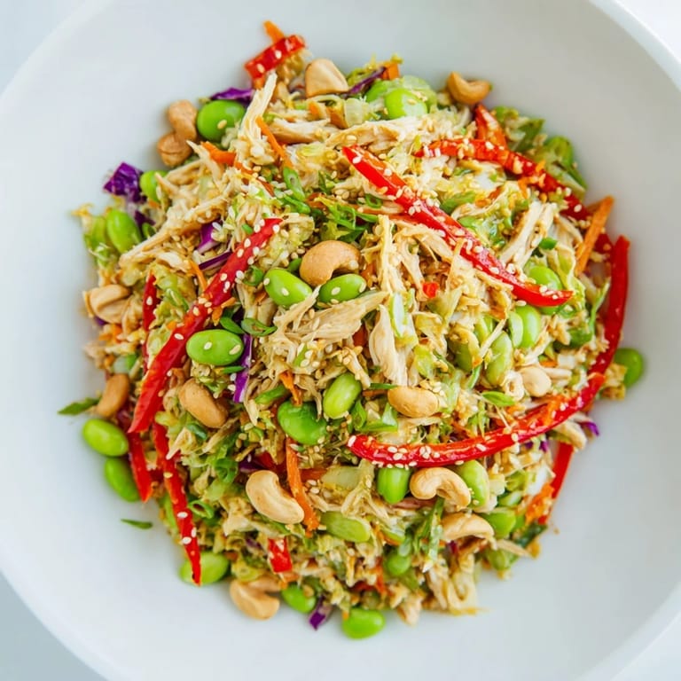 Zapisz Pewnego gorącego popołudnia w lipcu otworzyłem lodówkę i spojrzałem na resztki z grilla. Szukając czegoś lekkiego i chrupiącego, połączyłem kurczaka z fasolką edamame i kilkoma warzywami. Kiedy polałem to wszystko domowym sosem imbirowym, wiedziałem, że to będzie coś więcej niż zwykła sałatka. Od tego dnia ten przepis gości w mojej kuchni zawsze, gdy potrzebuję odświeżenia.