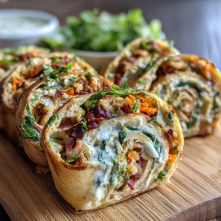Arrange pinwheels on a platter for parties or pack them in lunchboxes with fresh fruit, veggie sticks, and a small treat. They pair wonderfully with carrot sticks, cherry tomatoes, or apple slices. For a complete meal, add a side of pretzels or whole-grain crackers and a yogurt cup. At parties, display them standing upright on a serving board to showcase the colorful spirals. Consider serving with a small container of ranch dressing or additional Dijon mustard for dipping. These pinwheels are also perfect for picnics since they're easy to eat without utensils and hold up well for several hours when kept cool.