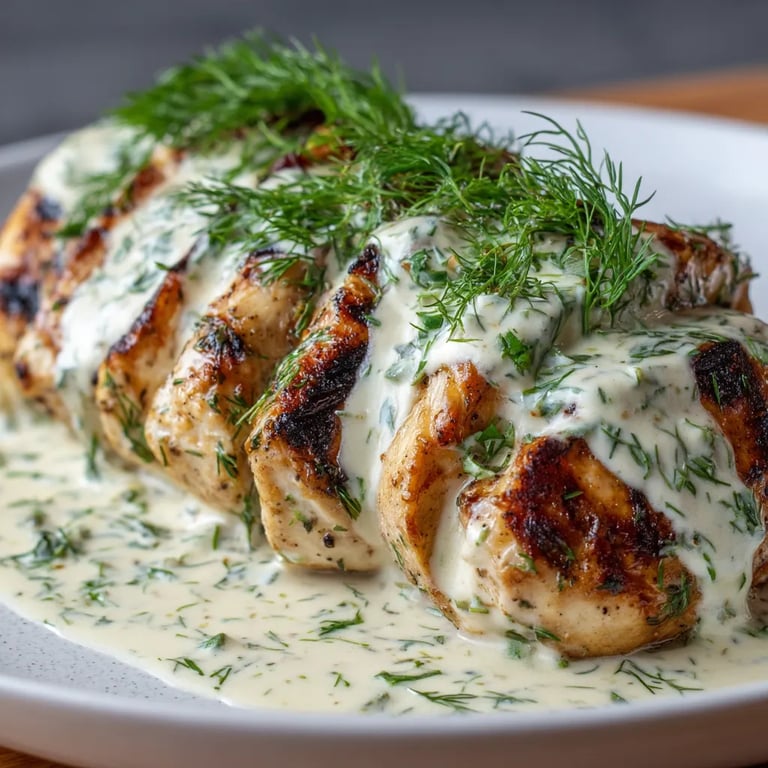 Możesz użyć greckiego jogurtu zamiast śmietany, aby uzyskać lżejszą wersję sosu. Jeśli nie masz świeżego koperku, możesz użyć suszony koperek, ale zmniejsz ilość do 2 łyżeczek. Kurczaka można zastąpić indykiem lub nawet grubszymi filetami z białej ryby, jak dorsz czy halibut – pamiętaj tylko o dostosowaniu czasu grillowania.