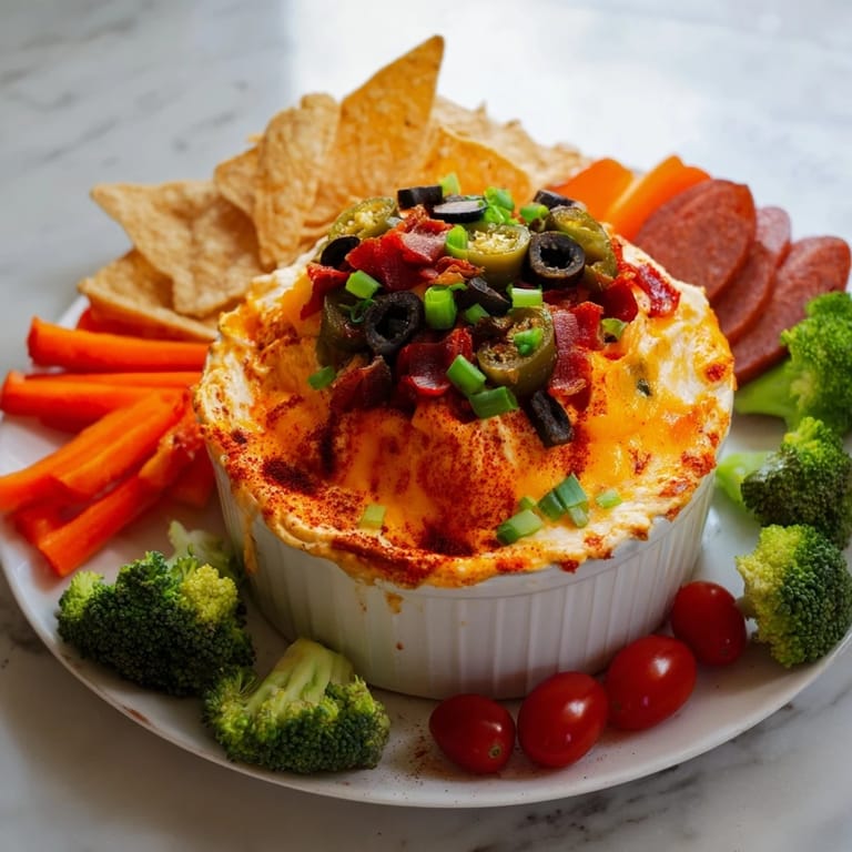 - Cheese Lava Dip: 2 cups shredded sharp cheddar cheese, 1 cup cream cheese softened, 1/2 cup sour cream, 1/2 cup diced fire-roasted tomatoes drained, 1/4 cup pickled jalapeños chopped, 1/4 cup chopped green onions, 1/4 teaspoon smoked paprika, 1/2 teaspoon garlic powder, 1/2 teaspoon onion powder, salt and pepper to taste