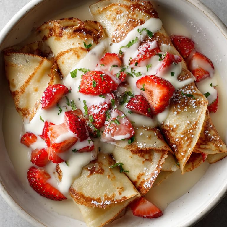 Zapisz Delikatne naleśniki z serem i truskawkami to klasyczny polski deser, który doskonale łączy słodycz sezonowych owoców z kremowym, puszystym nadzieniem. Smak waniliowego sosu otula całość i sprawia, że każda porcja jest wyjątkowo świeża i elegancka a przygotowanie ich to prawdziwa przyjemność na każdym etapie.