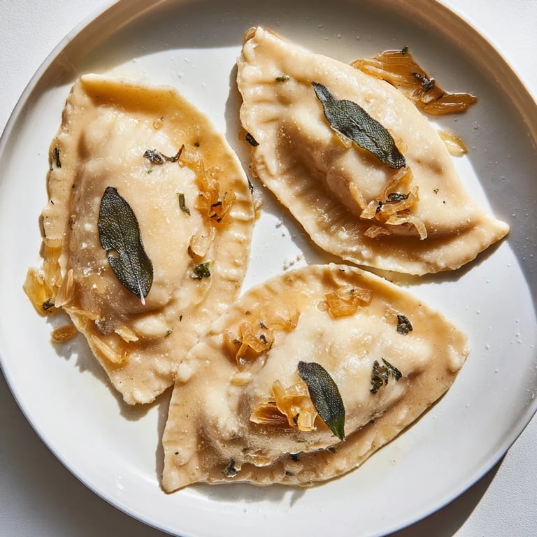 Zapisz Delikatne polskie pierogi z kremowym farszem z batatów i świeżej szałwii to idealna propozycja na rozgrzewający, wegetariański obiad.