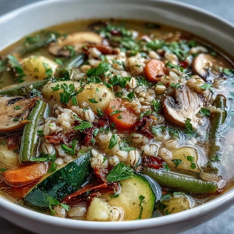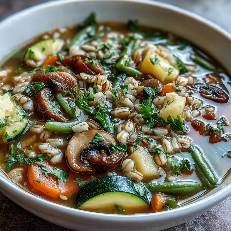 Zapisz Somewhere between autumn and winter, when the farmers market starts smelling like earth and the evenings turn crisp, I found myself reaching for barley instead of pasta. A friend mentioned she'd been making this rustic vegetable soup for Sunday dinners, and something about the combination of mushrooms and pearl barley just made sense to me. The first time I made it, my kitchen filled with this gentle, savory warmth that reminded me why simple soups are sometimes the most comforting ones. There's no fancy technique here, just honest vegetables and grains that know how to get along.