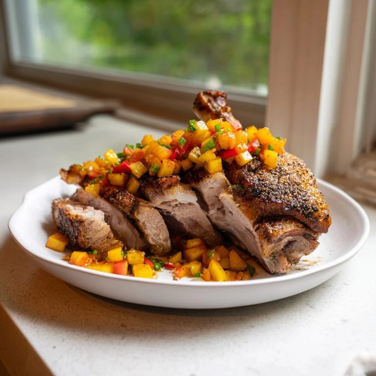 Mashed potatoes, roasted vegetables, or crusty bread complement the rich pork and tangy chutney beautifully.