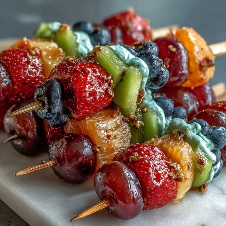Customize your rainbow kabobs by swapping or adding fruits based on availability and preference. Try kiwi slices for an additional green layer, blackberries or purple grapes for a true indigo shade, or dragon fruit for an exotic touch. For a vegan version, use plant-based yogurt and replace honey with maple syrup or agave nectar. You can also experiment with the dip by adding vanilla extract, a pinch of cinnamon, or fresh mint for different flavor profiles. During other seasons, adapt the fruit selection to what's freshest—using cantaloupe instead of oranges in summer, or pomegranate seeds in fall.