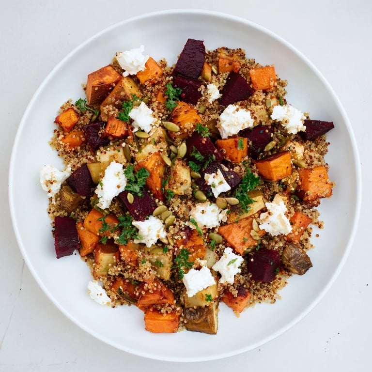 Przygotowałam tę sałatkę na rodzinny, zimowy obiad i zniknęła z misek w mgnieniu oka — wszyscy chwalili połączenie słodkich warzyw z kremową fetą oraz chrupiącymi pestkami. Dzięki temu prostemu przepisowi odkryłam nowy sposób na wykorzystanie komosy ryżowej.